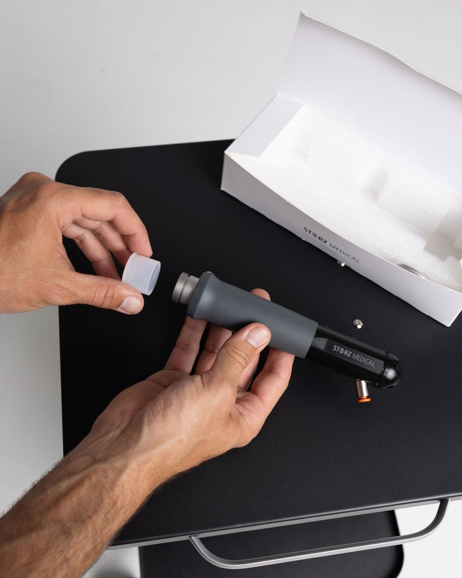 Dodatkowy aplikator Sparrow umożliwiałatwą wymianękońcówek dzięki funkcji zatrzaskowej, bez konieczności zmiany głowicy i jej odkręcania. Ideą jest posiadanie kilku aplikatorów, każdy z innym nadajnikiem dla łatwości użycia i oszczędności czasu podczas leczenia.