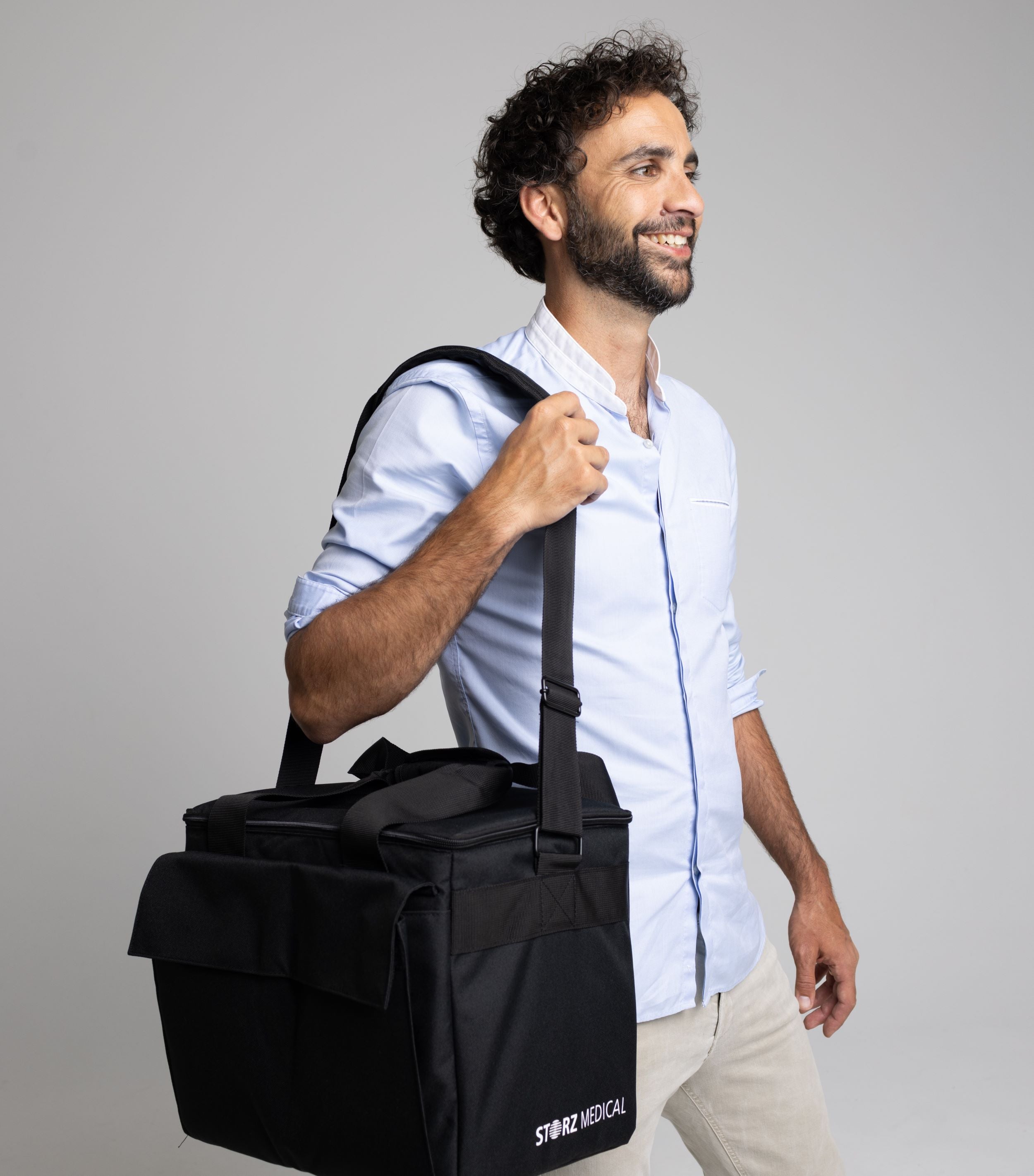Torba transportowa została zaprojektowana tak, aby umożliwić bezpieczne przenoszenie MP1 bez ryzyka uszkodzenia sprzętu. Oznacza to, że możesz przeprowadzać sesje fali uderzeniowej w domu lub w klubach sportowych, z dedykowanym miejscem na urządzenie i drugim na akcesoria. Torba ma dwa różne uchwyty, krzyżowy i ręczny.