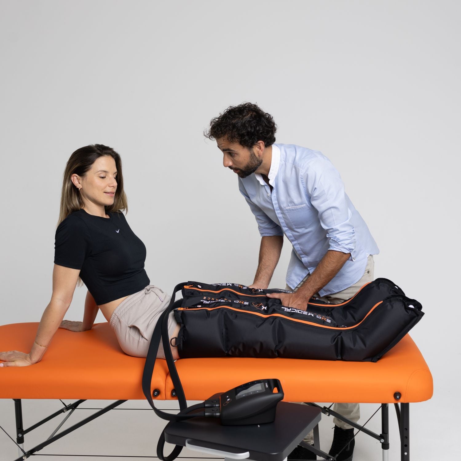 Ramiona i biodra do presoterapii są sprzedawane jako akcesoria dodawane do systemu presoterapii. Sprzedawane są bez podstawy sterującej. Buty do pressoterapii X-Recovery należy zakupić z wyprzedzeniem.